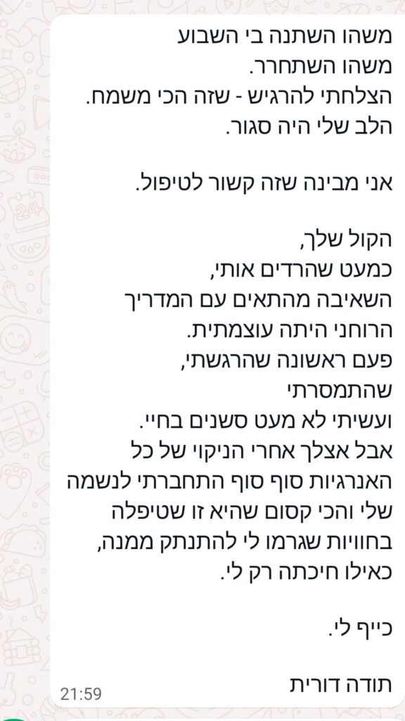 לא תלות במטפל, אלא חיבור פנימי.